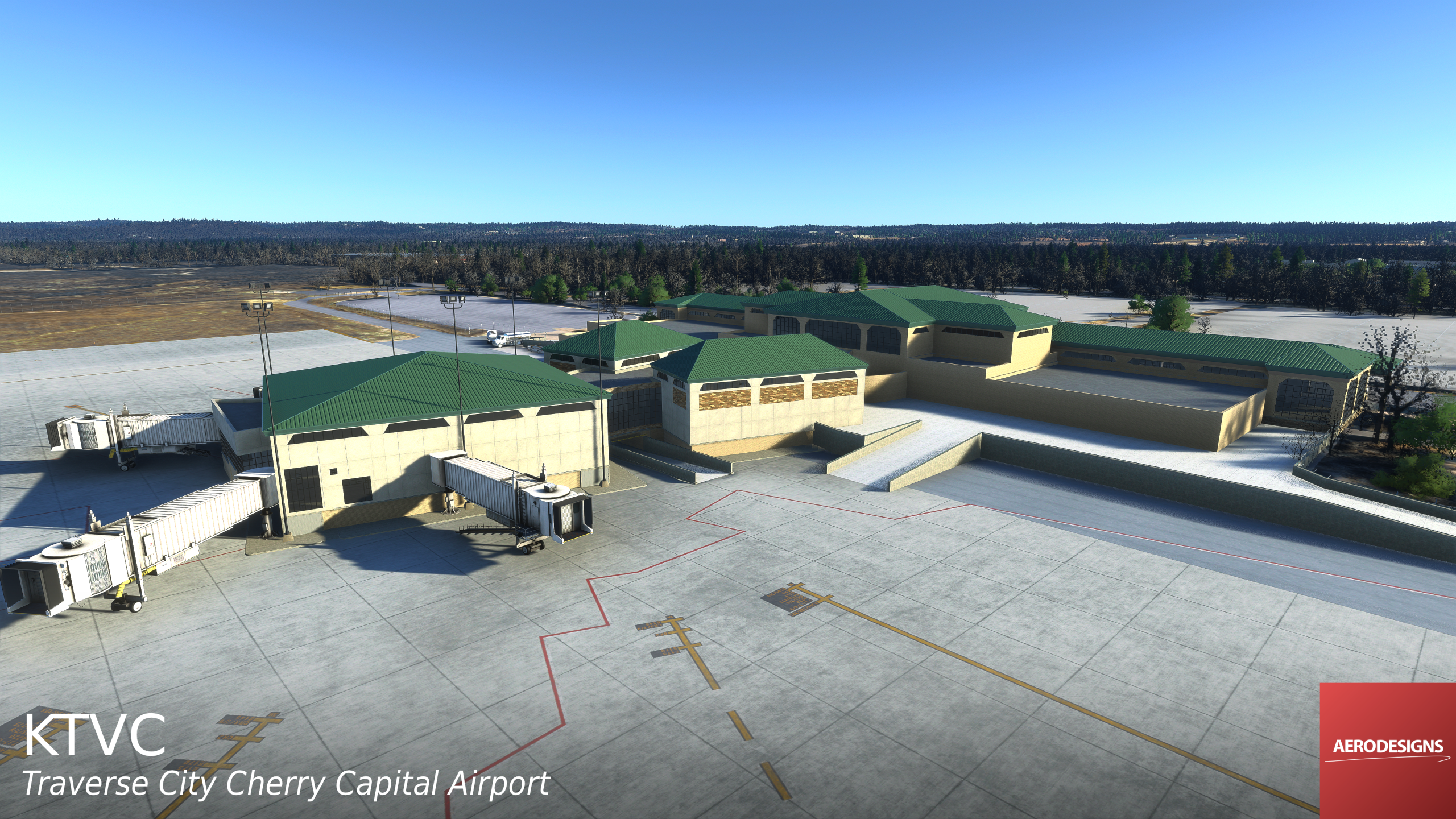 A AeroDesigns Traverse City KTVC é o novo projeto da desenvolvedora norte-americana focada em cenários para Microsoft Flight Simulator e X-Plane. O estúdio confirmou que Cherry Capital Airport (KTVC), em Traverse City, Michigan, está em desenvolvimento ativo.