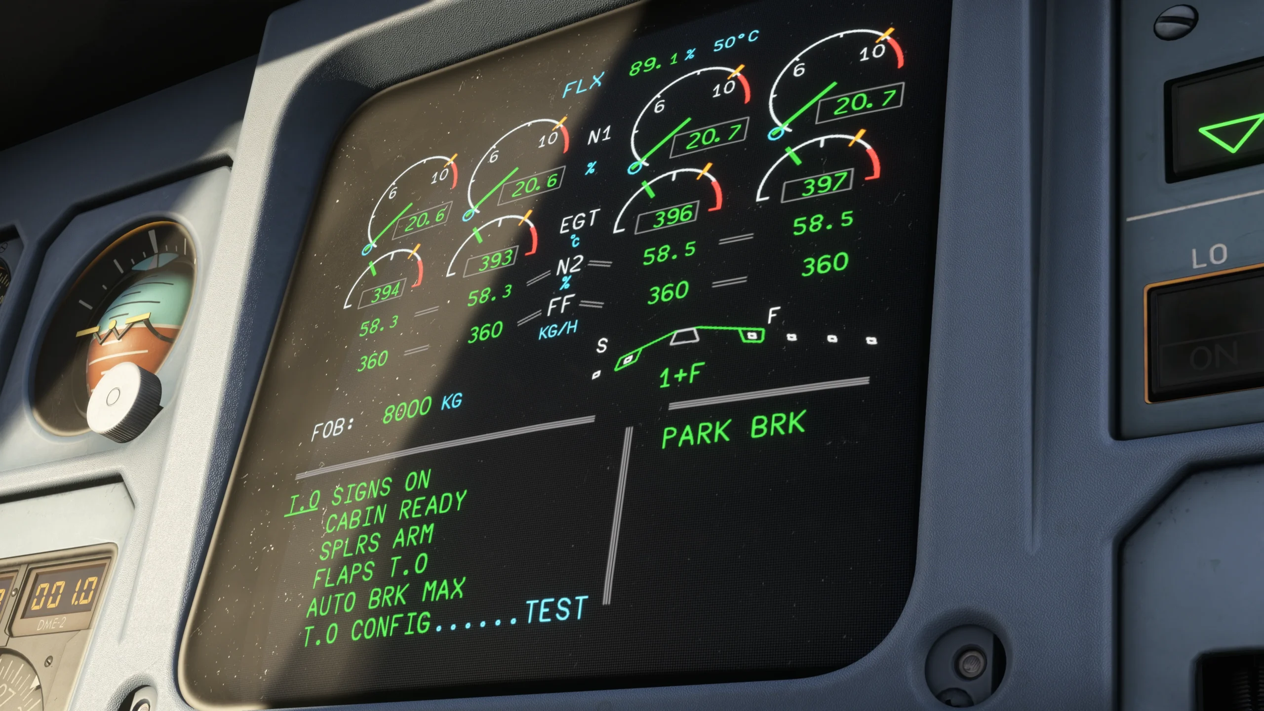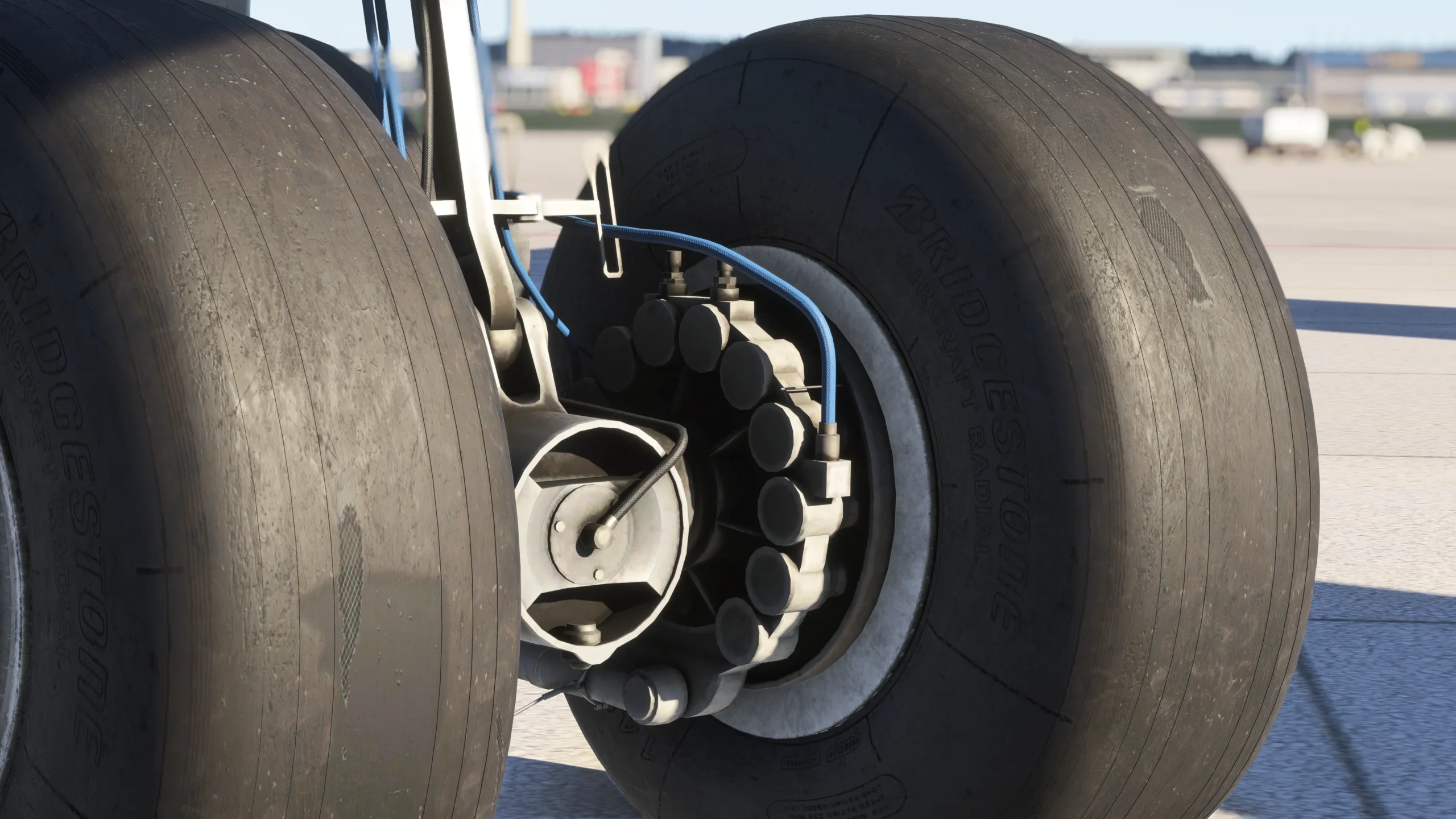 O desgaste também é dinâmico: pneus, freios e outros componentes se degradam com o tempo e podem ser resetados através do EFB (Electronic Flight Bag). Para customização, os simuleiros podem alternar detalhes como antenas SATCOM, ventoinhas de freio e sondas de detecção de gelo para corresponder às configurações de companhias aéreas específicas.