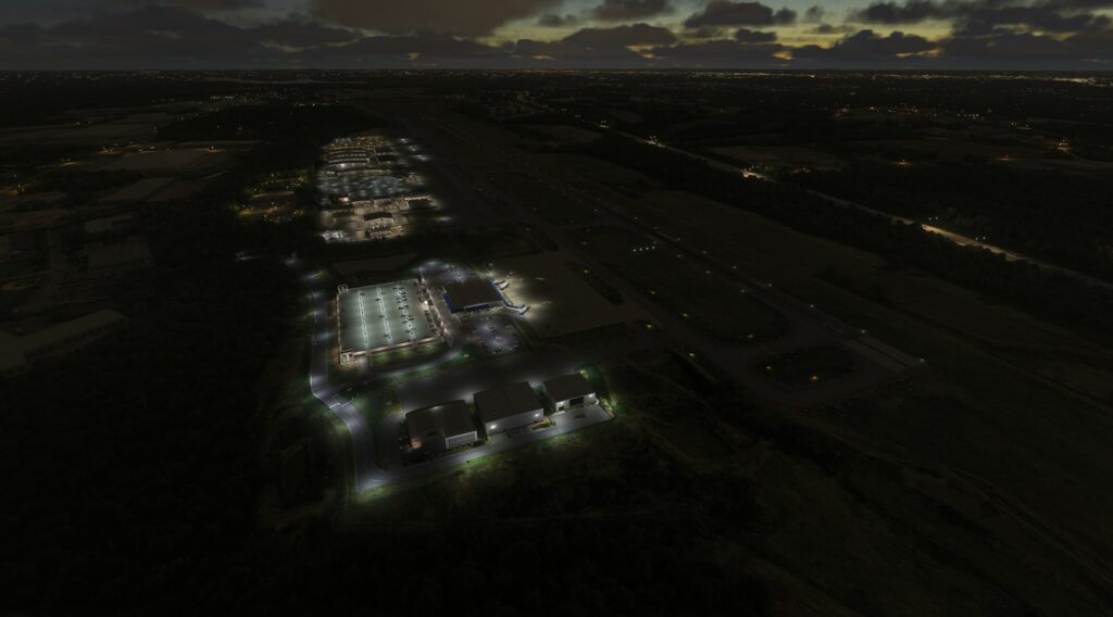 Apesar de ser um projeto de um único desenvolvedor, o KJQF foi construído do zero ao longo de quase dois anos, cobrindo toda a área de aproximadamente 750 acres do aeroporto real. A proposta é entregar um cenário denso em detalhes, mas ainda assim otimizado para manter boa performance tanto no MSFS 2020 quanto no MSFS 2024, sem virar um devorador de FPS.