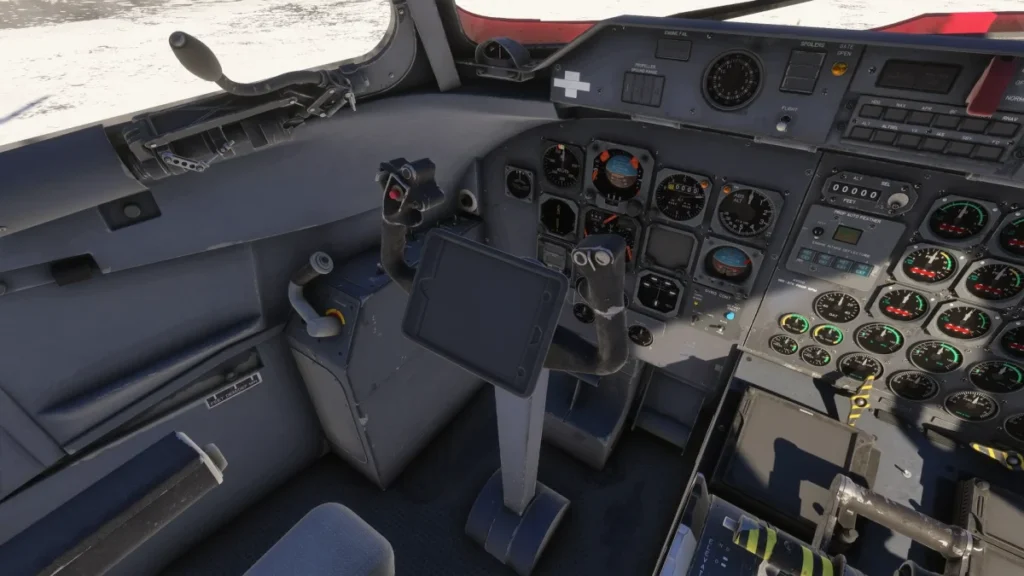 Outro detalhe interessante é o que parece ser uma integração com o TDS GTNXi, embutido no painel. Se isso se confirmar, o Dash 7 v2 pode ganhar um bom reforço em navegação moderna, sem perder o charme analógico do cockpit principal. Ainda assim, por enquanto tudo o que temos é aparência: a PILOT’S não entrou em especificações de FMS, VNAV ou lógica de sistemas, então a grande dúvida da comunidade segue sendo se o comportamento em voo vai finalmente acompanhar o visual.