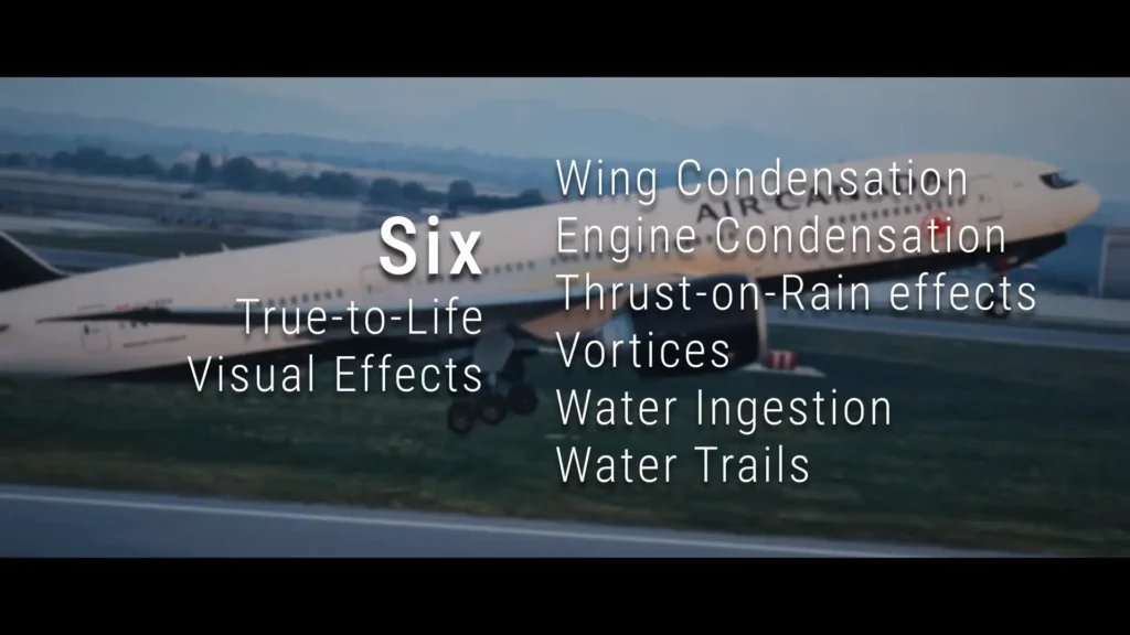 Entre os destaques estão condensação nas asas, vórtices saindo das naceles dos motores e spray dinâmico em operações sob chuva ou pista encharcada, variando conforme potência, velocidade e peso do avião. Para quem gosta de capturar screenshots e vídeos, o addon também permitirá forçar os efeitos para fins cinematográficos, ignorando as limitações atmosféricas reais quando o objetivo for apenas visual.