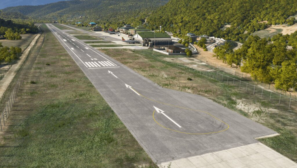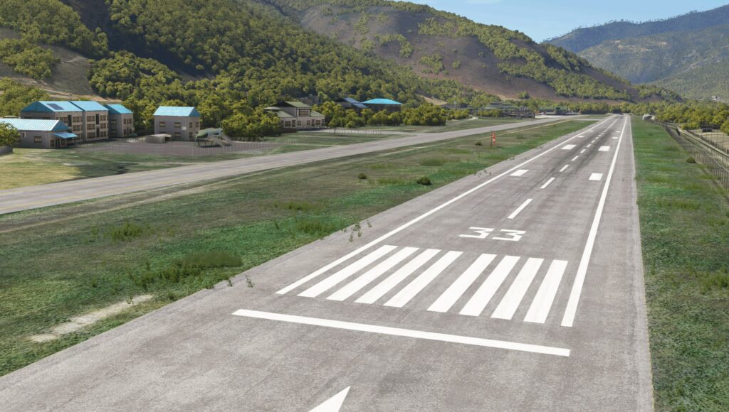 A IronSim se empenhou em replicar fielmente a complexidade e a beleza de VQPR. O cenário apresenta edifícios de terminal personalizados, torres de controle e hangares, além de aeronaves estáticas que dão vida ao ambiente. Um dos destaques é a inclusão de pistas com inclinação e uma malha de terreno detalhada, essenciais para simular o perfil real do aeroporto. A área circundante também foi caprichosamente preenchida com diversos pontos de referência e objetos 3D, complementando a desafiadora rota de aproximação.