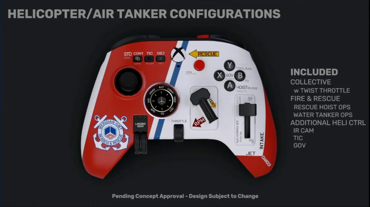 O X-Ray Handheld controller, já mostrado no FSWeekend 2025, volta aos holofotes com duas definições importantes: preço final de US$ 149, acima da estimativa inicial de US$ 99, e um pacote de recursos mais completo. Além das faceplates magnéticas, alavanca de trem de pouso de duas posições e alavanca de flap com detentes, o X-Ray passa a incluir um painel de autopilot completo, painel de comunicações, detentes de throttle no estilo Airbus e um layout dedicado para helicópteros, tentando cobrir praticamente qualquer tipo de operação no Microsoft Flight Simulator.