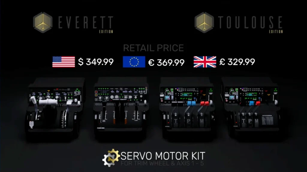 Para quem está de olho no throttle Latitude Plus, a Meridian anunciou um kit de servos que permite motorizar eixos individualmente depois da compra. Trim wheel, speed brake e manetes de throttle poderão receber motores dedicados por cerca de US$ 49,99 cada, aproveitando seis compartimentos já previstos na parte inferior do hardware. Isso significa que os primeiros compradores não precisarão trocar o equipamento inteiro se decidirem adicionar motorizações mais tarde, bastando instalar os módulos.