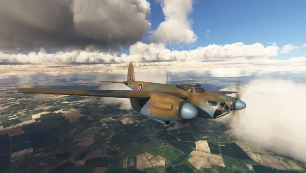 O Mosquito Mk IV reproduz a variante bombardeira que participou de algumas das missões de ataque de precisão mais famosas da Segunda Guerra. Segundo a Aeroplane Heaven, tanto o exterior quanto o cockpit foram construídos a partir de plantas e referências originais, com atenção especial aos motores Rolls-Royce Merlin V-12. O som ficou a cargo da Echo19, prometendo partidas, magnetos e regime de potência com timbre convincente para quem conhece o ronco característico dos Merlin.