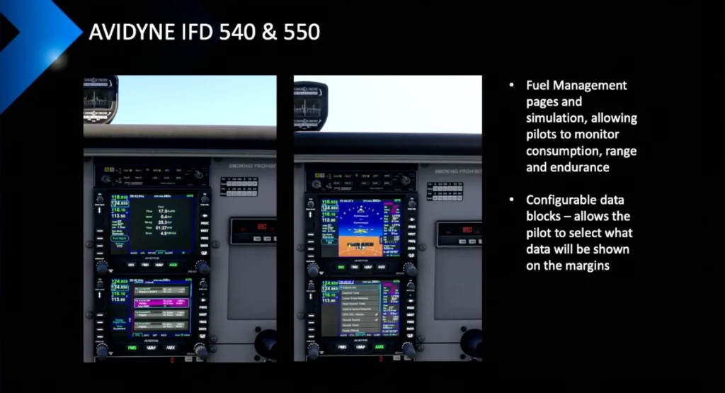 A Sim Update 5 vem acoplada à Aircraft and Avionics Update 4 (AAU4), que funciona quase como um mini-pacote de expansão gratuito. No lado de aviônicos, a Working Title estreia os Avidyne IFD 540 e IFD 550 como “sim attachments”. Assim como no mundo real, eles chegam como substitutos diretos, permitindo que desenvolvedores integrem esses GPS navegadores em aeronaves compatíveis sem recriar tudo do zero. A partir da SU5, o MSFS ganha um novo padrão de painel disponível em nível de plataforma, abrindo espaço para uma paisagem de aviônicos menos dominada apenas por Garmin.