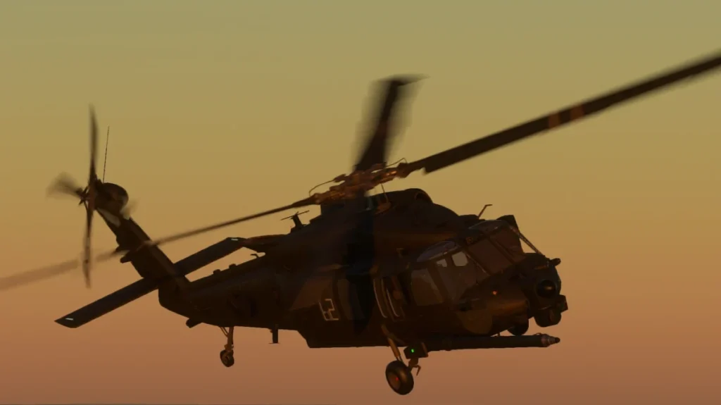 Desde o lançamento inicial do projeto da Delta Simulations, o espaço de helicópteros Black Hawk no MSFS ficou bem mais concorrido. A Miltech Simulations colocou no mercado o pacote MH-60, um produto payware de US$ 37,99 com foco em missões de busca e salvamento, combate a incêndios e outras operações especiais, trazendo dinâmica de voo validada e múltiplas variantes. A própria Miltech já anunciou também um UH-60 dedicado, planejado como lançamento pago separado.