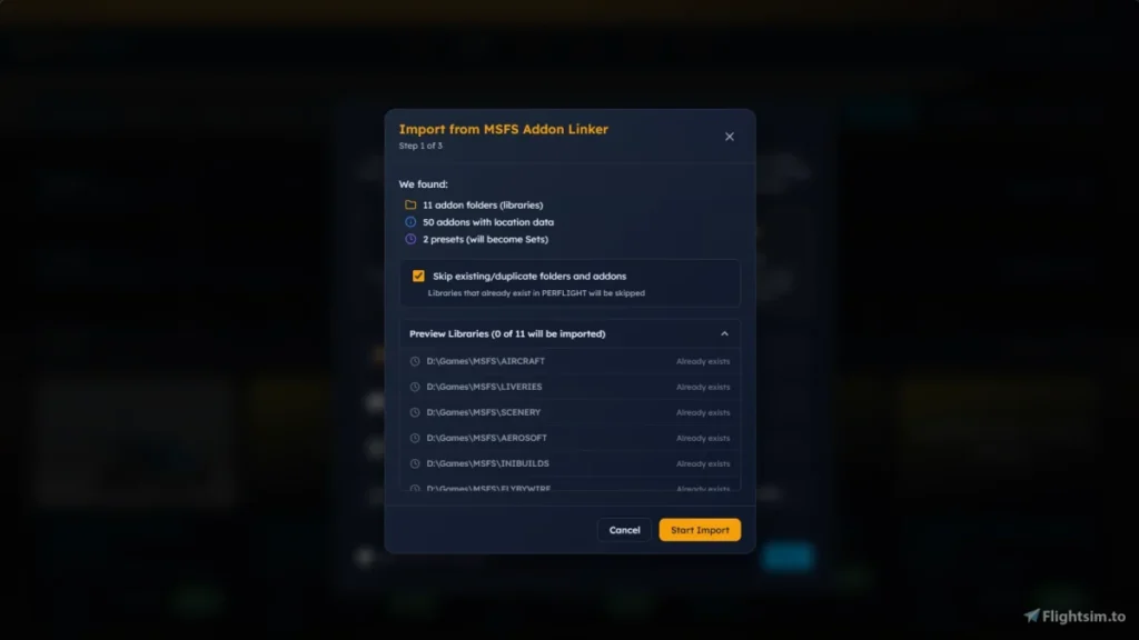 Para quem já vive no ecossistema do MSFS Addons Linker, o desenvolvedor do PERFLIGHT promete uma migração praticamente sem fricção: há uma ferramenta de importação em um clique que lê suas pastas, presets e dados de geolocalização e replica tudo dentro do novo app. Na prática, você não precisa reorganizar a biblioteca do zero, o que remove a maior barreira de entrada para quem já tem anos de coleção.