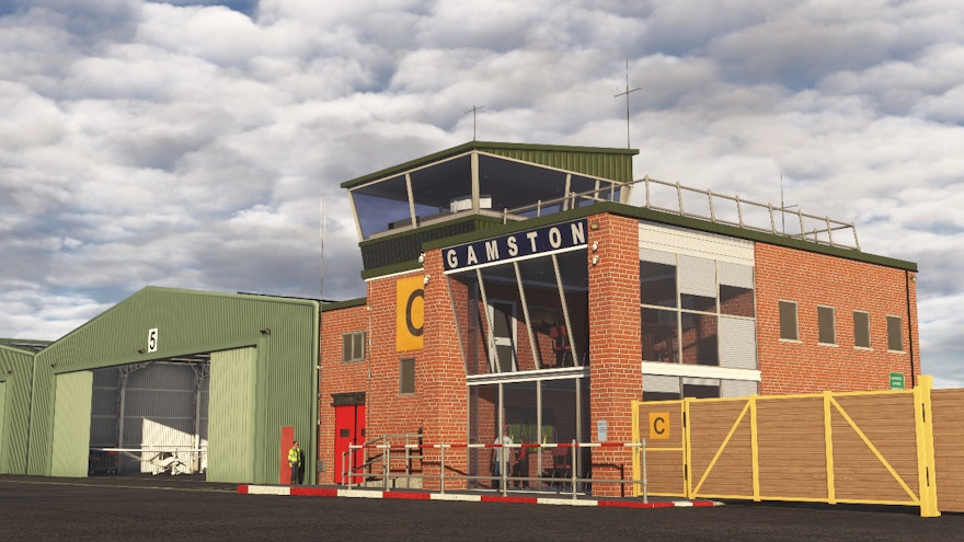 Segundo a Burning Blue Design, o cenário de Retford Gamston traz mais de 80 objetos 3D customizados com texturas PBR completas, cobrindo desde hangares e oficinas até pequenos detalhes de mobiliário de rampa. Estruturas icônicas do aeroporto real, como o Apron Café, o centro de manutenção da Diamond Aircraft e a torre de controle principal, foram recriadas com alto nível de fidelidade, reforçando a sensação de estar em um aeródromo ativo e bem cuidado.