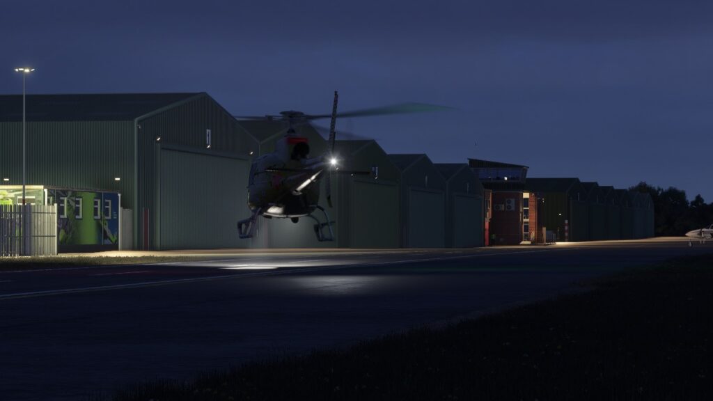 Para quem gosta de operar à noite, o pacote traz iluminação noturna trabalhada à mão, com luzes de pátio, marcadores de taxiway e iluminação de prédios ajustados para operações noturnas plausíveis. Não é apenas uma questão estética: a forma como a luz se distribui no pátio e nas áreas de hangar influencia diretamente a leitura de profundidade e a percepção espacial durante táxi em condições de baixa visibilidade.
