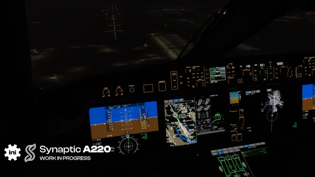 O A220 da Synaptic começou como iniciativa freeware, ganhou parceria com a iniBuilds, virou payware e perdeu a janela de 2025. Em compensação, o discurso atual é claro: o atraso foi usado para elevar o nível de fidelidade de sistemas e de integração interna da aeronave, mirando um patamar mais próximo de estudo de sistemas do que de simples add-on “bonito por fora”.