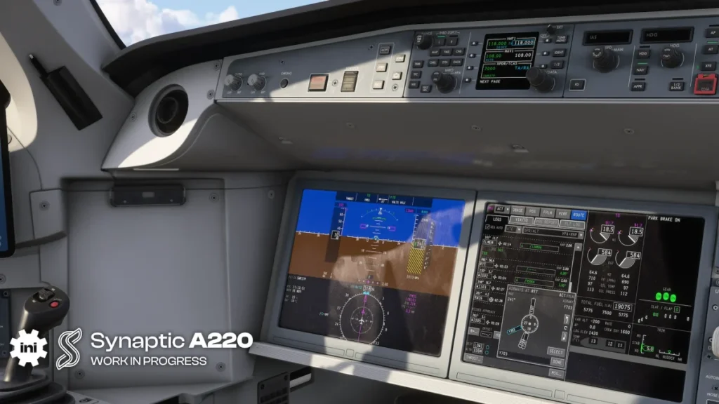 Desde a FSExpo 2025, o foco da equipe foi praticamente cirúrgico em sistemas. O fly-by-wire foi totalmente refeito, acompanhado de um modelo de motor customizado, guiagem lateral e vertical, autopilot, autoland e sistemas elétrico, bleed air, hidráulico e de rádios desenvolvidos sob medida. Nada de reaproveitar lógica genérica de airliners: o objetivo declarado é reproduzir o comportamento específico do A220, inclusive em regimes de operação mais extremos.