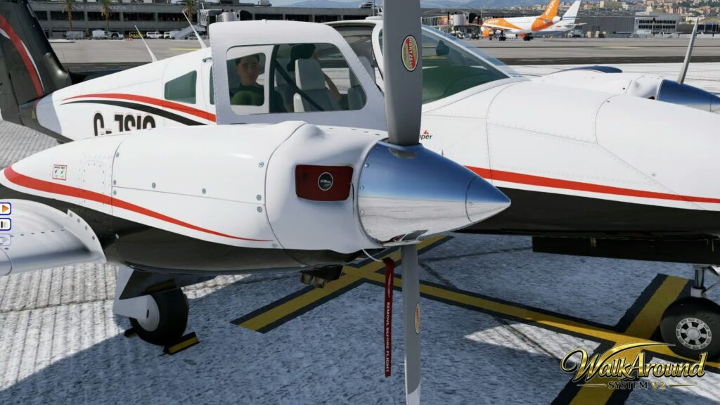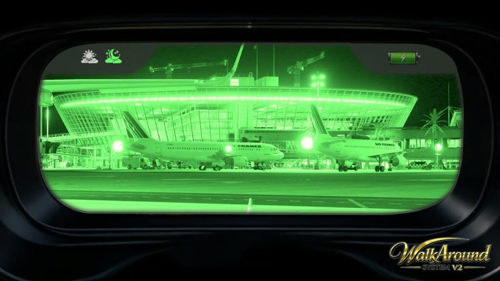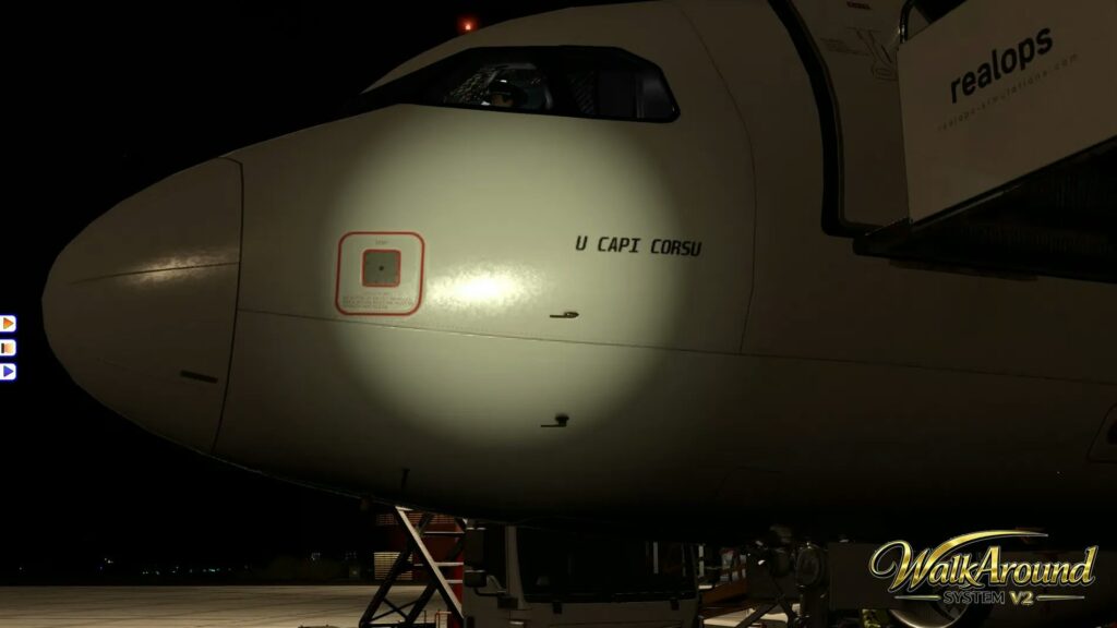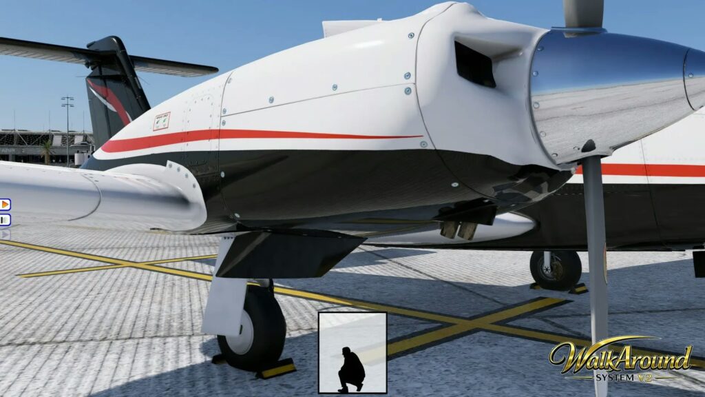 O destaque do WalkAround v2 é o fluxo de inspeção externa que não se limita a um tour cinematográfico: o usuário controla o personagem, circula pela aeronave, confere superfícies de controle, trem de pouso e detalhes de fuselagem como se estivesse fazendo o famoso walkaround de linha aérea. Não é um sistema de checagem “gamificado” com checklists automáticos, mas sim uma ferramenta de câmera em primeira pessoa pensada para quem gosta de seguir procedimentos com calma.